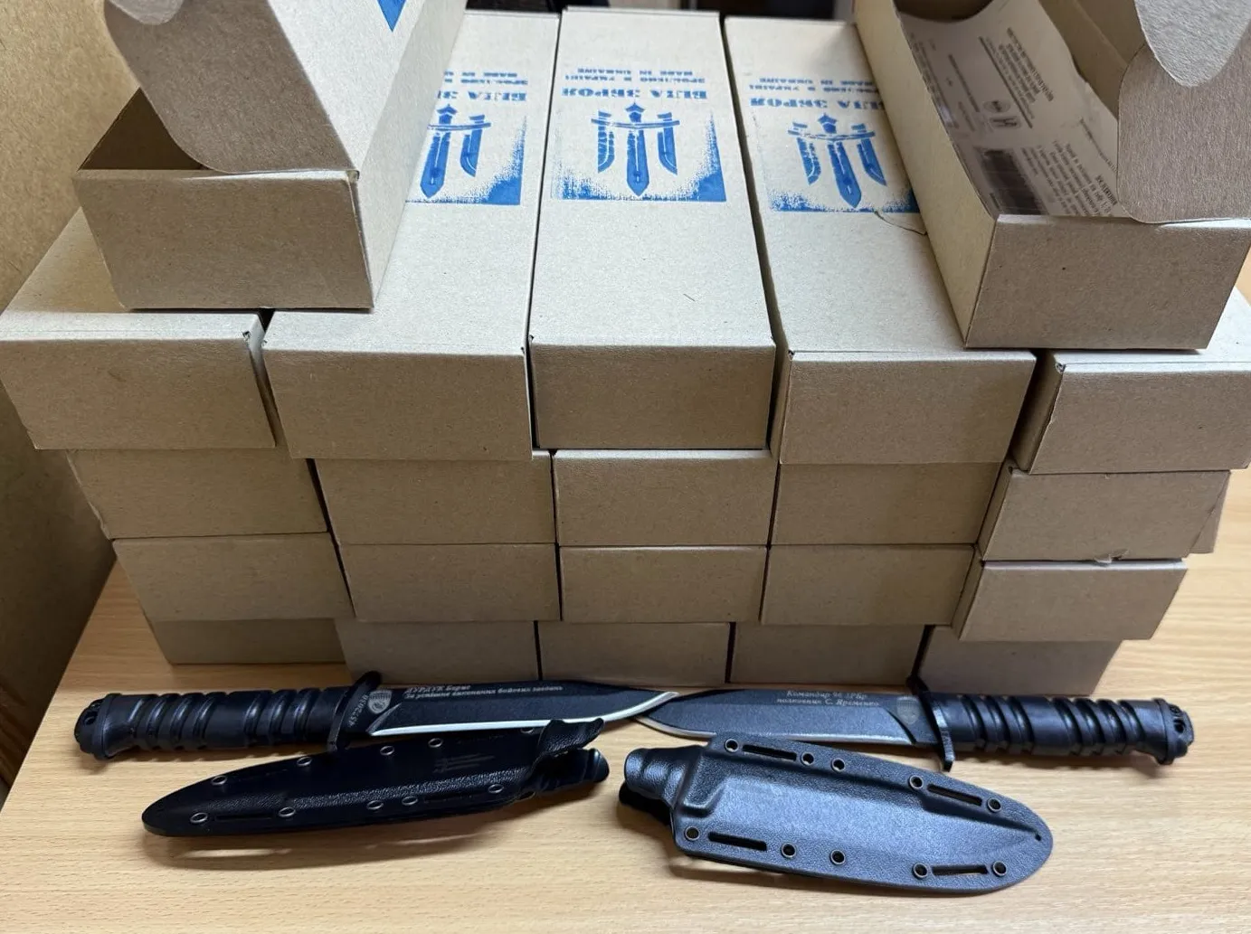 Цього разу було прийнято рішення придбати для наших героїв нагородні ножі «КРУК» від надійної компанії-виробника тактичних, бойових ножів і сокир «БІЛА ЗБРОЯ», яка дає пожиттєву гарантію на експлуатацію своєї продукції.